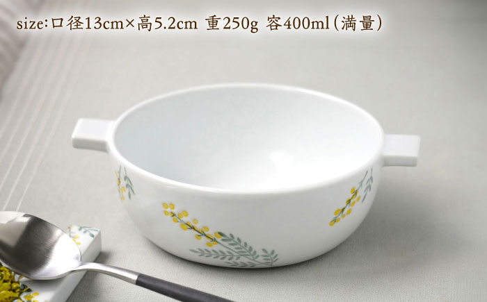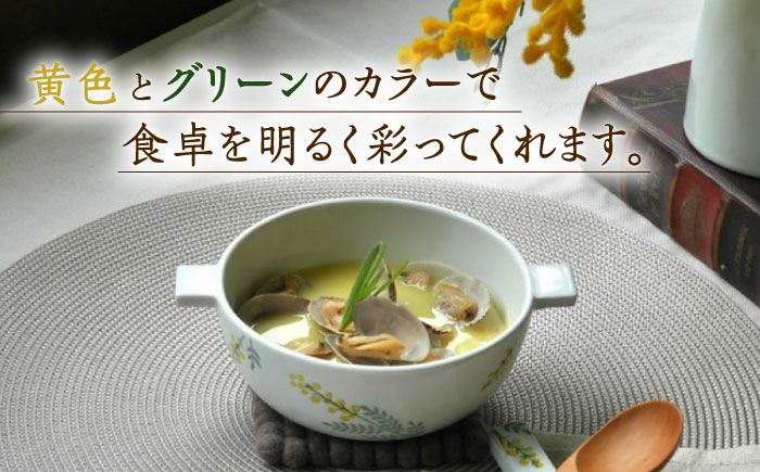 可愛いミモザで癒しの時間を。グラタンやスープを可愛くおしゃれに。 【波佐見焼】和ミモザ グラタン皿 2枚セット【和山】 [WB151]