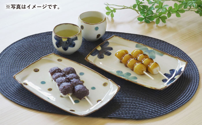 あたたかみのある優しい雰囲気のお皿セット 【波佐見焼】くつろぎセット 長角皿/プチカップ 藍ふち花・藍豆しぼり2柄【光和陶器】 [SC72]