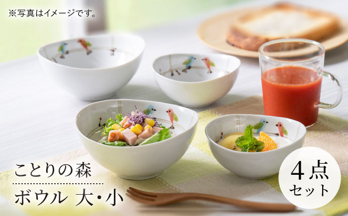 今にも小鳥たちのさえずりが聞こえてきそうな可愛くてハッピーな気分にしてくれる器 【波佐見焼】ことりの森 ボウル 大小4点セット【まるしん】 [WD44]