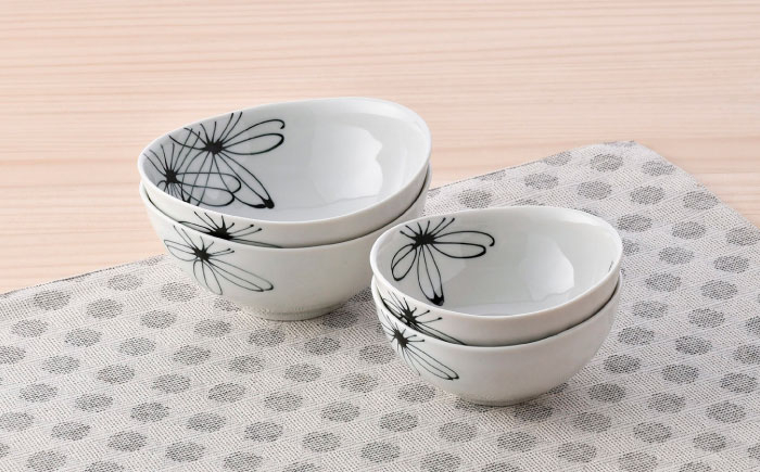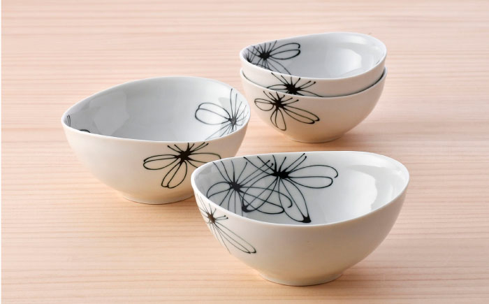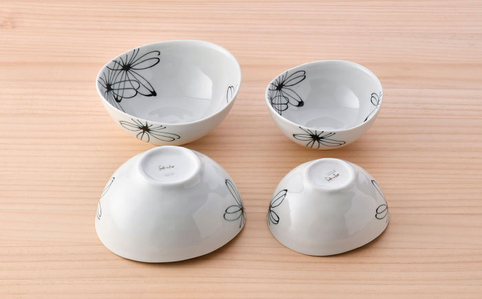 色褪せないいつまでも飽きの来ないデザインはうれしいポイント 【波佐見焼】パキラ ボウル 大小4点セット【まるしん】 [WD47]