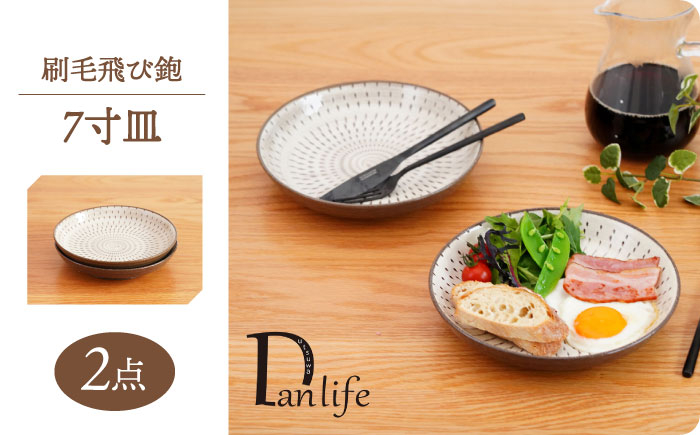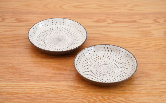 ひとつひとつ手仕事でつくる飛び鉋のうつわ 【波佐見焼】刷毛飛び鉋 7寸皿 2枚セット 【団陶器】 [PB155]