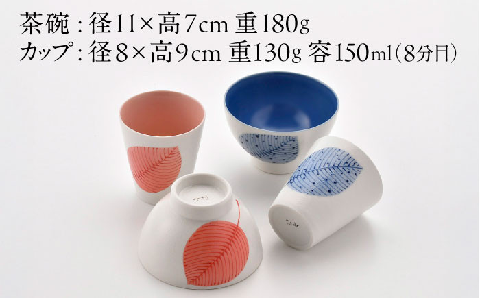 ついつい手に取りたくなる、かわいいお茶碗 【波佐見焼】いろ葉 茶碗&カップセット 青・赤 セット【まるしん】 [WD52]