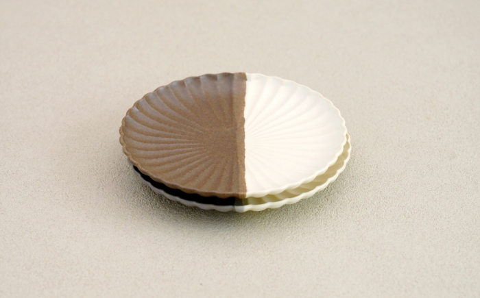 大人気のしのぎシリーズにハーフカラーの仲間入り!ケーキ皿やパン皿として◎ 【波佐見焼】花しのぎ 取皿 ペア ハーフカラー 栗・グレー【団陶器】 [PB174]