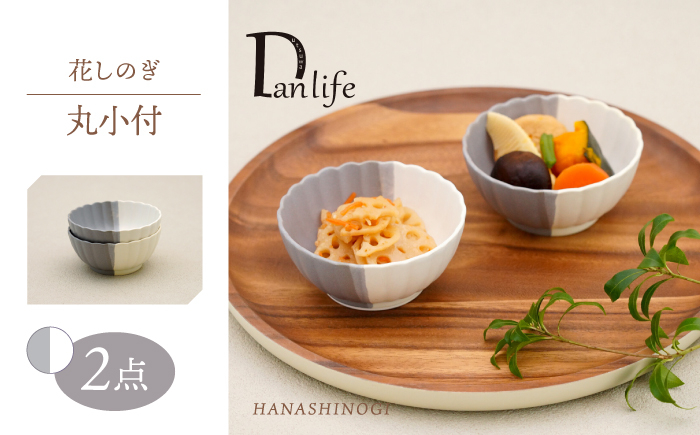 大人気のしのぎシリーズにハーフカラーが仲間入り! 【波佐見焼】花しのぎ 丸小付 ペア ハーフカラー(グレー/白)【団陶器】 [PB187]