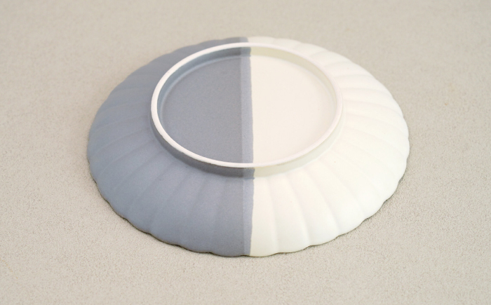 大人気のしのぎシリーズにハーフカラーが仲間入り! 【波佐見焼】花しのぎ 大皿 ペア ハーフカラー(グレー/白)【団陶器】 [PB192]