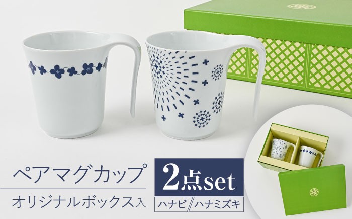 オリジナルのサンテナBOXシリーズ!人気の重なるマグカップをペアでお届け! 【波佐見焼】【当店オリジナルボックス】 ペアマグカップ サンテナボックス入り ハナビ・ハナミズキ 【福田陶器店】 [PA367]