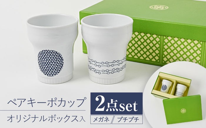 保温・保冷効果がバツグン!二重構造のキーポカップがオリジナルのサンテナボックスに 【波佐見焼】【当店オリジナルボックス】ペアキーポカップ サンテナボックス入り メガネ・プチプチ【福田陶器店】 [PA373]