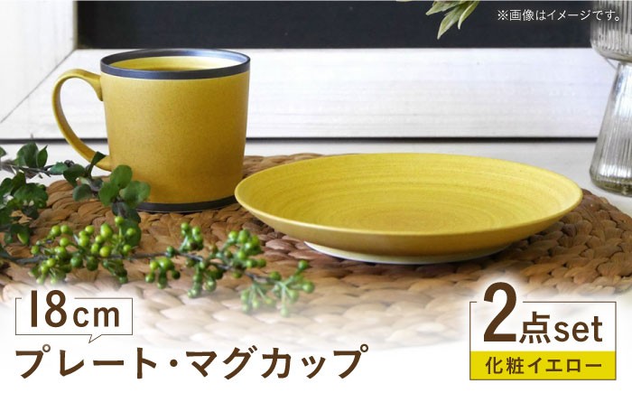 朝食やランチに最適! おうちカフェ プレートとマグカップのセット 【波佐見焼】 18cmプレート・マグカップ 化粧イエロー 2点セット 【和山】 [WB172]