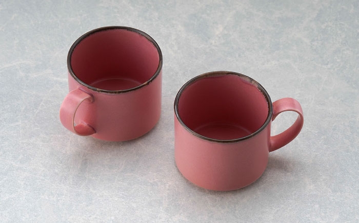 色味と質感にこだわったピンクマット 【波佐見焼】マグカップ 筒型 渕錆ピンクマット ペア【長十郎窯】 [AE122]