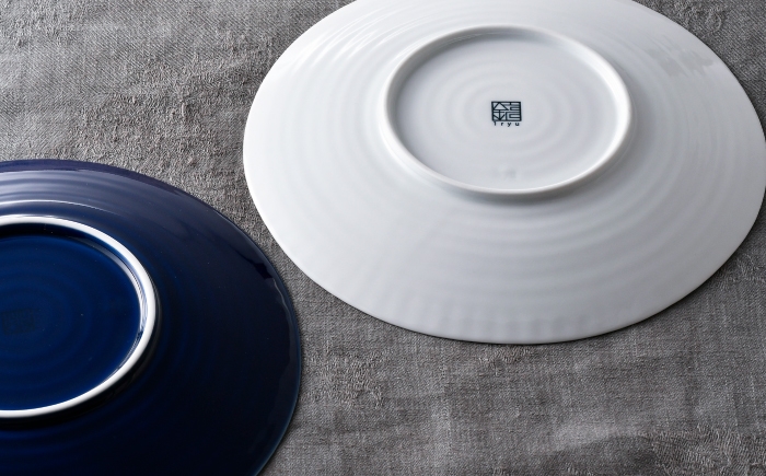 毎日の食卓に彩る食器♪ 【波佐見焼】しのぎ 大皿2枚セット 瑠璃・白磁 食器 プレート【一龍陶苑】 [CC91]