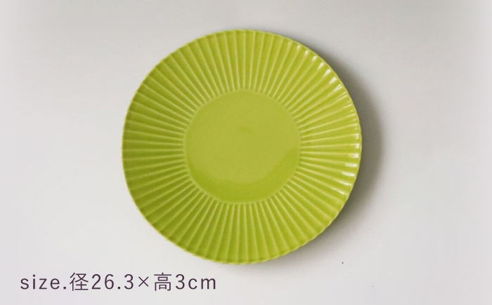地域の生産者応援の品 食洗機・レンジも使える波佐見焼き 【波佐見焼】 【訳あり】しのぎ 若草 特大皿 プレート【一龍陶苑】 [CC94]