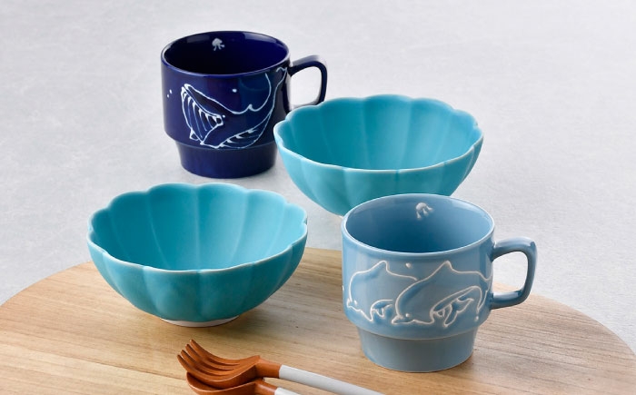人気の波佐見焼!オリジナルセットアップ! 【波佐見焼】小鉢・マグカップ ブルー オリジナルセット 4点【福田陶器店/トーエー】 [NB156]