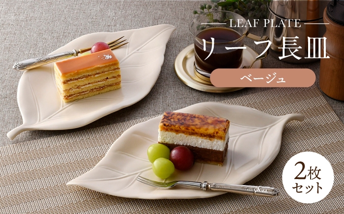 おうちでレストラン気分♪和食も洋食もお任せ!料理が映える優しいベージュのリーフ皿 【波佐見焼】長皿 リーフ長皿 2枚セット ベージュ 【重山陶器】 [ZB33]