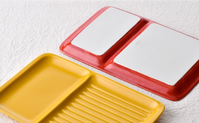 トースト好き必見! サクサク感をキープする多機能プレート 【波佐見焼】マルチパン皿 ペア レッド・イエロー【大新窯】 [DC177]
