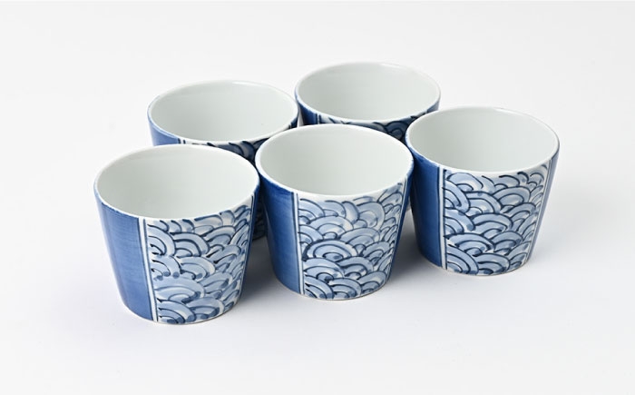 福田陶器店オリジナル、和福シリーズ!縁起と使い勝手がよいそばちょこの5個セット! 【波佐見焼】 和福 マルチカップ 青海波 そば猪口 オリジナル 縁起もの【福田陶器店】 [PA386]