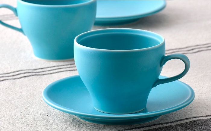 マット調のトルコブルーが美しく、使い勝手のよいペアのコーヒーカップ(ソーサー付) 【波佐見焼】 コーヒーカップ&ソーサー トルコブルー 2点セット マット【福田陶器店】 [PA392]