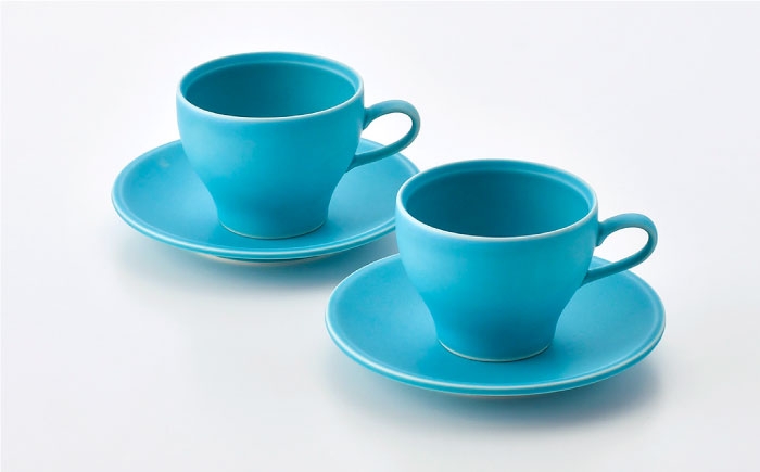 マット調のトルコブルーが美しく使いやすい!小鉢とコーヒーカップのセットです! 【波佐見焼】 小鉢+コーヒーカップ&ソーサー 2客 トルコブルー モアハッピーセット【福田陶器店】 [PA393]