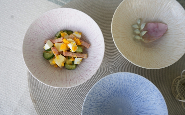 波を連想させるレリーフとパステルカラーの爽やかなシリーズ。