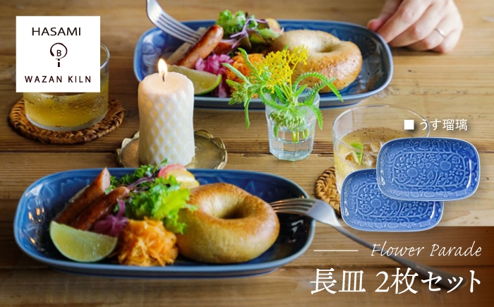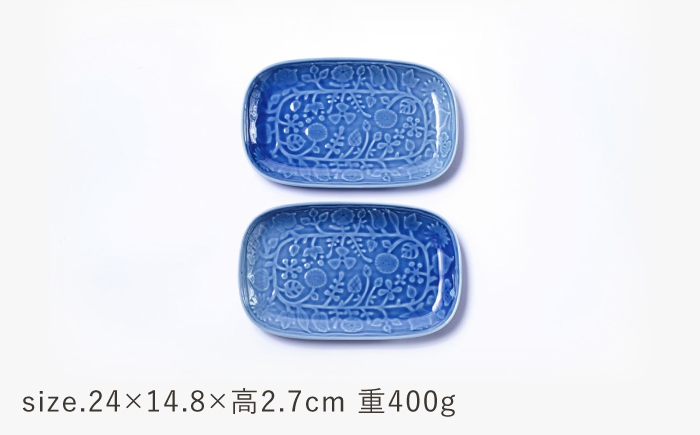・濃淡が表情豊かな可愛い器 【波佐見焼】長皿 レリーフ・フラワーパレード うす瑠璃 2枚 セット【和山】 [WB186]