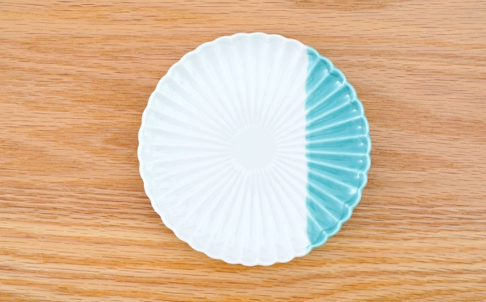大人気のしのぎシリーズに、ハーフカラーが新しく仲間入り。 【波佐見焼】花しのぎ 取皿 ハーフカラー ミント 2枚セット【団陶器】 [PB196]