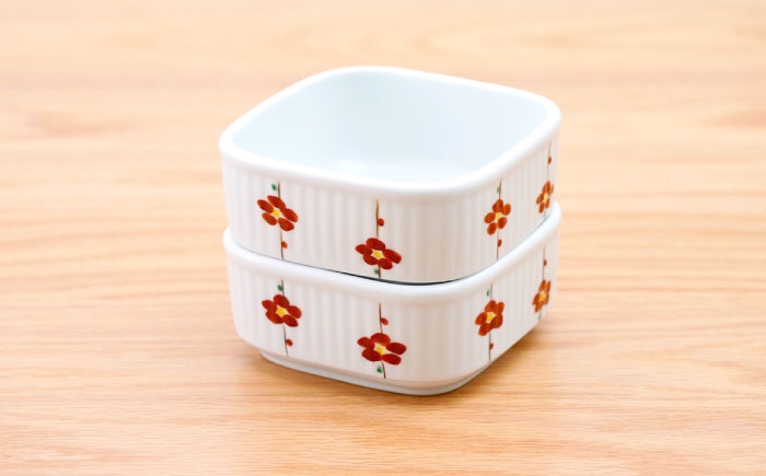 そのまま食卓へ、清潔で便利な保存容器 【波佐見焼】角パック 花木立 赤 2個セット【団陶器】 [PB217]
