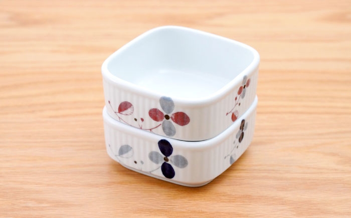 そのまま食卓へ、清潔で便利な保存容器 【波佐見焼】角パック フローレット ペア 2色セット【団陶器】 [PB226]