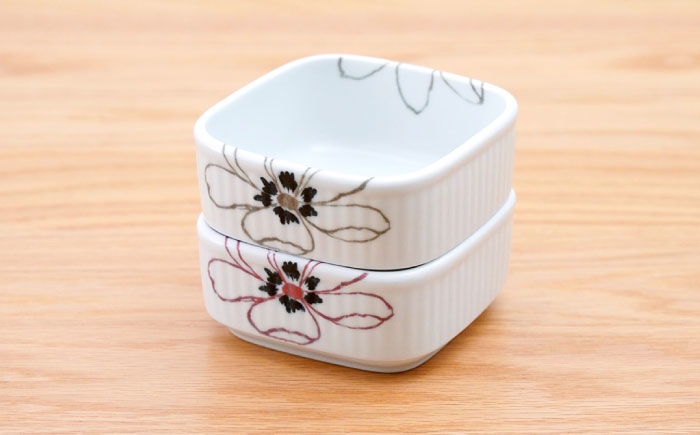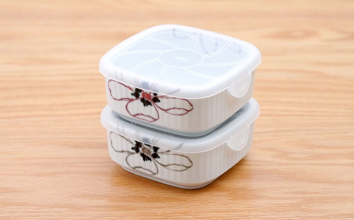 そのまま食卓へ、清潔で便利な保存容器 【波佐見焼】角パック アネモネ ペア2色セット【団陶器】 [PB227]