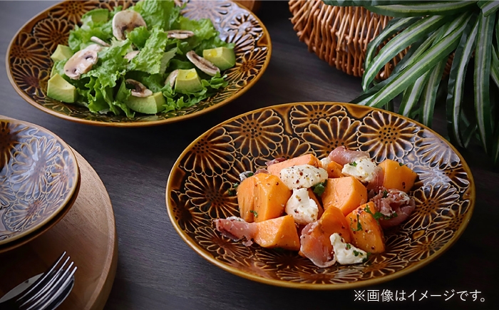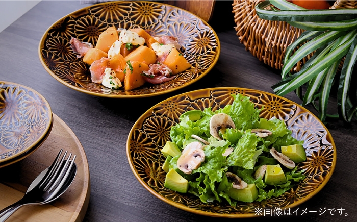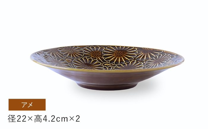 波佐見焼 器 陶器 ボウル 鉢 【波佐見焼】マリーゴールド ボウルL アメ 2枚セット 食器 皿【翔芳窯】 [FE466]