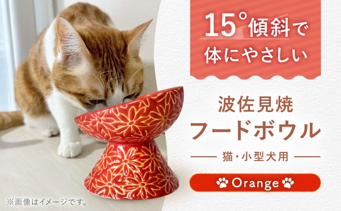 うちの子のに今日も楽しいごはん時間を。 【波佐見焼】フードボウル 猫・小型犬用 花美(はなび)シリーズ orange 1点【enjoy the meals】 [AH05]
