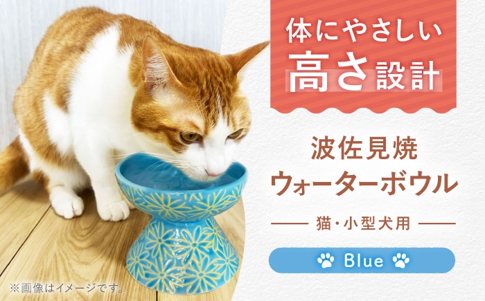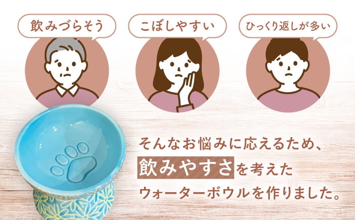 うちの子に今日も楽しいごはん時間を。 【波佐見焼】ウォーターボウル 猫・小型犬用 花美(はなび)シリーズ blue 1点【enjoy the meals】 [AH07]
