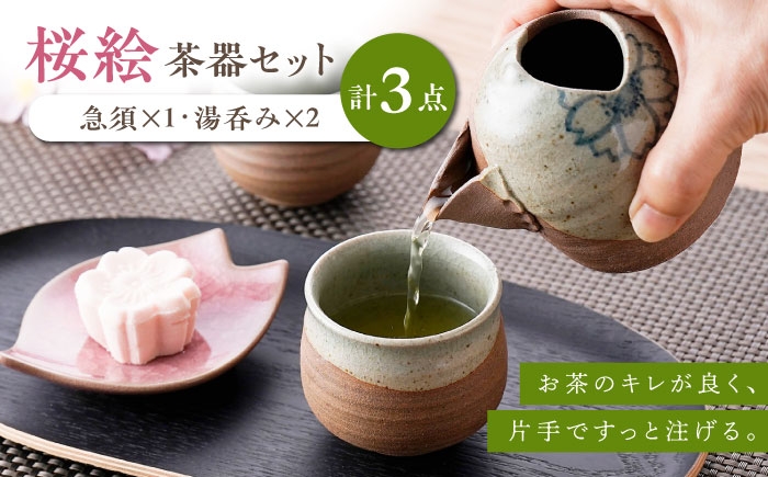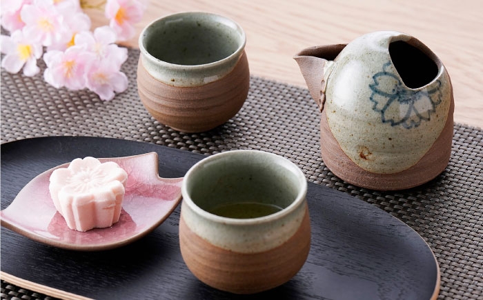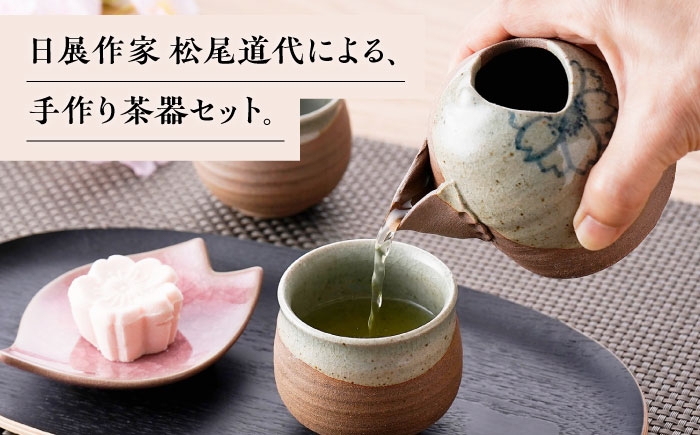 日展作家 松尾道代による、手作り茶器セット。 【波佐見焼】桜絵 茶器セット 急須・湯呑【工房風】 [EF10]