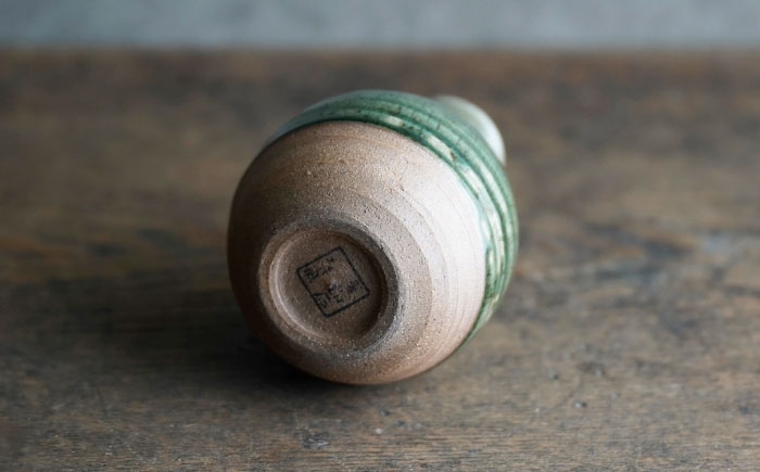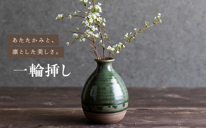 花瓶 花器 フラワーベース 一輪挿 一輪挿し グリーン 陶器 焼き物 織部 織部釉