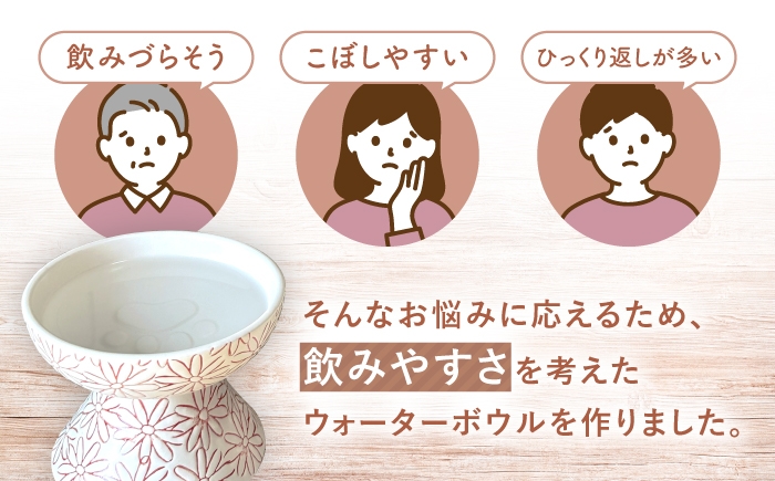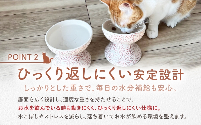 うちの子に今日も楽しいごはん時間を。かわいい肉球がたまらない! 【波佐見焼】ウォーターボウル 猫・小型犬用 花美(はなび)シリーズ white 1点【enjoy the meals】 [AH14]