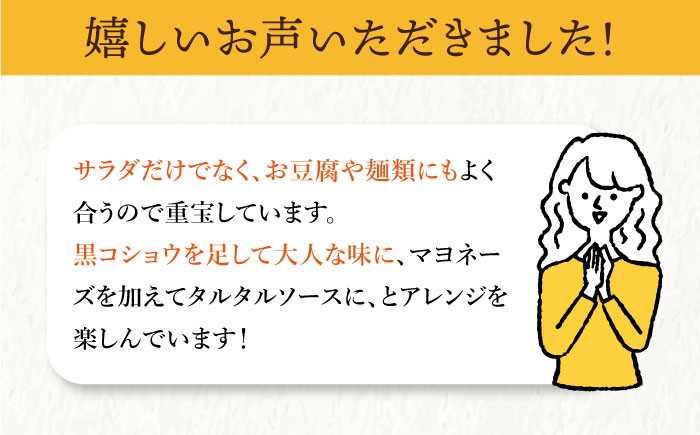 ・20~40代女性 サラダだけでなく、お豆腐や麺類にもよく合うので重宝している。黒コショウを足して大人な味に、マヨネーズを加えてタルタルソースに、とアレンジも楽しめます。