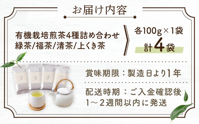 【全12回定期便】 有機栽培 煎茶 4種 詰め合わせ (4本/回)【…