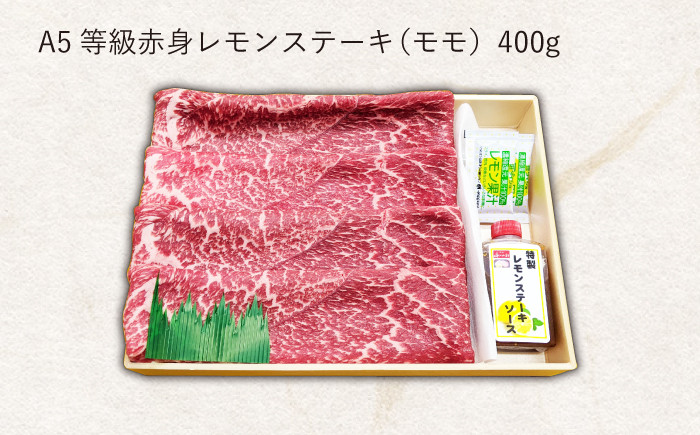 A5ランクのお肉と、レモンの相性がたまらない! 【最高級A5のみを厳選】長崎和牛 赤身 レモン ステーキ(モモ)約400g【肉のあいかわ】 [QAA003] / 長崎県 佐々町