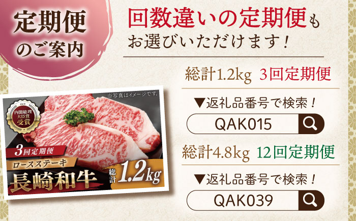 | 容量 | 【全6回定期便】 長崎和牛 ロースステーキ:総計2.4kg ■1回のお届け:約400g |