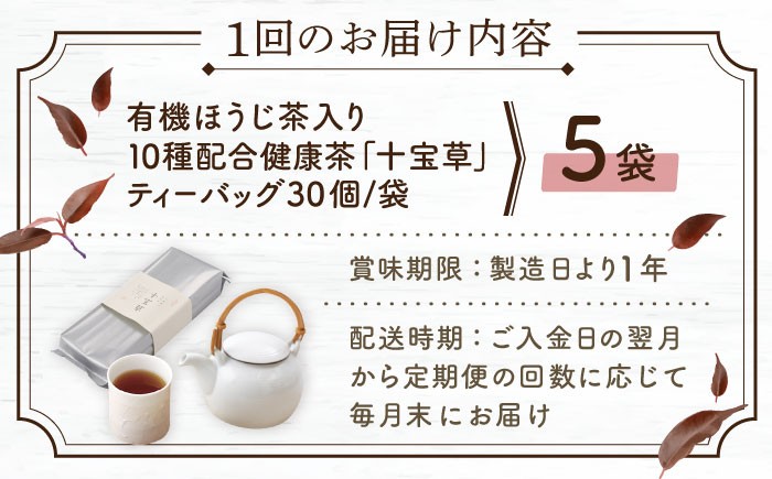 世界にもマーケットを広げるお茶屋さんの有機栽培茶 【全3回定期便】「十種配合の健康茶」 有機 ほうじ茶 入り 十宝草 ティーバッグ 計15袋(5袋/回)【北村茶園・茶の間】 [QAD016] 焙じ茶 ティーパック 有機栽培 ギフト / 長崎県 佐々町