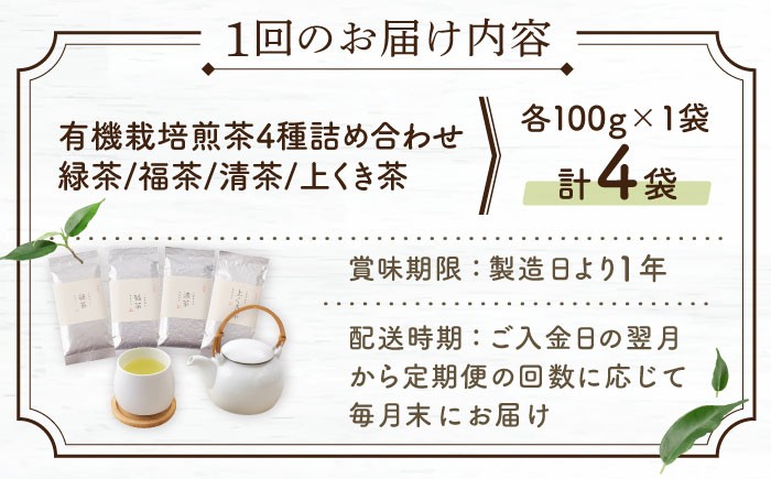 世界にもマーケットを広げるお茶屋さんの有機栽培茶 【全12回定期便】 有機栽培 煎茶 4種 詰め合わせ (4本/回)【北村茶園・茶の間】 [QAD024] 緑茶 お茶 茶葉 飲み比べ ギフト / 長崎県 佐々町