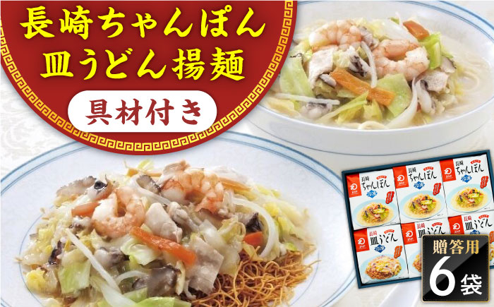 長崎の名物ちゃんぽん・皿うどんの詰合せです! 【具材付き】長崎ちゃんぽん・皿うどん 6人前(各3人前) 詰合せ 贈答用<みろく屋> [QBP056] / 長崎県 佐々町