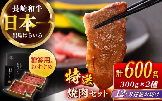 牛肉 牛丼 すき焼き 焼肉 BBQ バーベキュー キャンプ 【日本一の和牛】長崎和牛 出島ばらいろ 特選焼肉 セット (ロース カルビ カタロース モモ のいずれか2種類)約300g×2 【合同会社 肉のマルシン】 [RCI045]