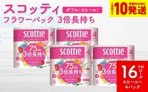 【スコッティ】フラワーパック 3倍長持ち 4ロール(ダブル)×4…