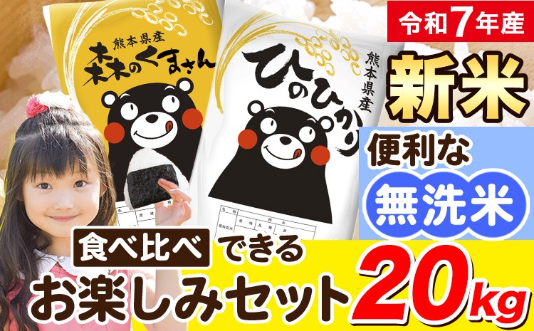 食卓をもっとおいしく、もっと楽しく。九州のブランド米を食べ比べできるセットです! 令和7年産 新米 無洗米 ひのひかり 森のくまさん 2種 食べ比べ 米 20kg 《7-14日以内に出荷予定(土日祝除く)》 ヒノヒカリ お米 こめ 高レビュー 熊本県産(荒尾市産含む) 精米 荒尾市 森くま ブランド米 ご飯