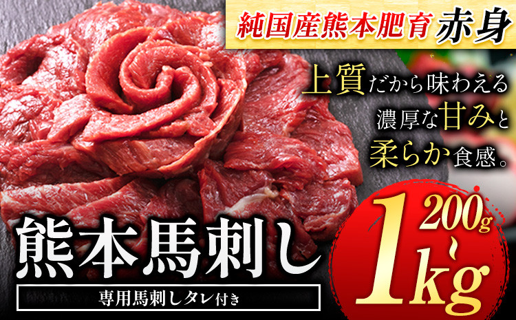 上質だから味わえる濃厚な甘みと柔らか食感 馬刺し 赤身 馬刺し 200g~1kg 【純 国産 熊本 肥育】 たっぷり タレ付き 200g 500g 1kg 生食用 冷凍《60日以内に出荷予定(土日祝除く)》送料無料 国産 絶品 馬肉 肉 ギフト st-p