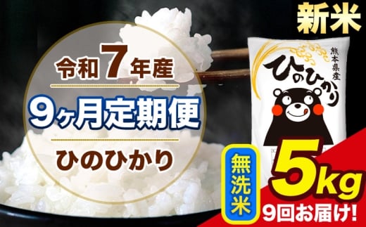 九州を代表するお米「ひのひかり」! 新米 令和7年産 【9ヶ月定期便】 ひのひかり 無洗米 5kg 5kg×1袋 計9回お届け 熊本県産 こめ コメ 精米 荒尾市 ひの 米 定期 《お申込み翌月から出荷》