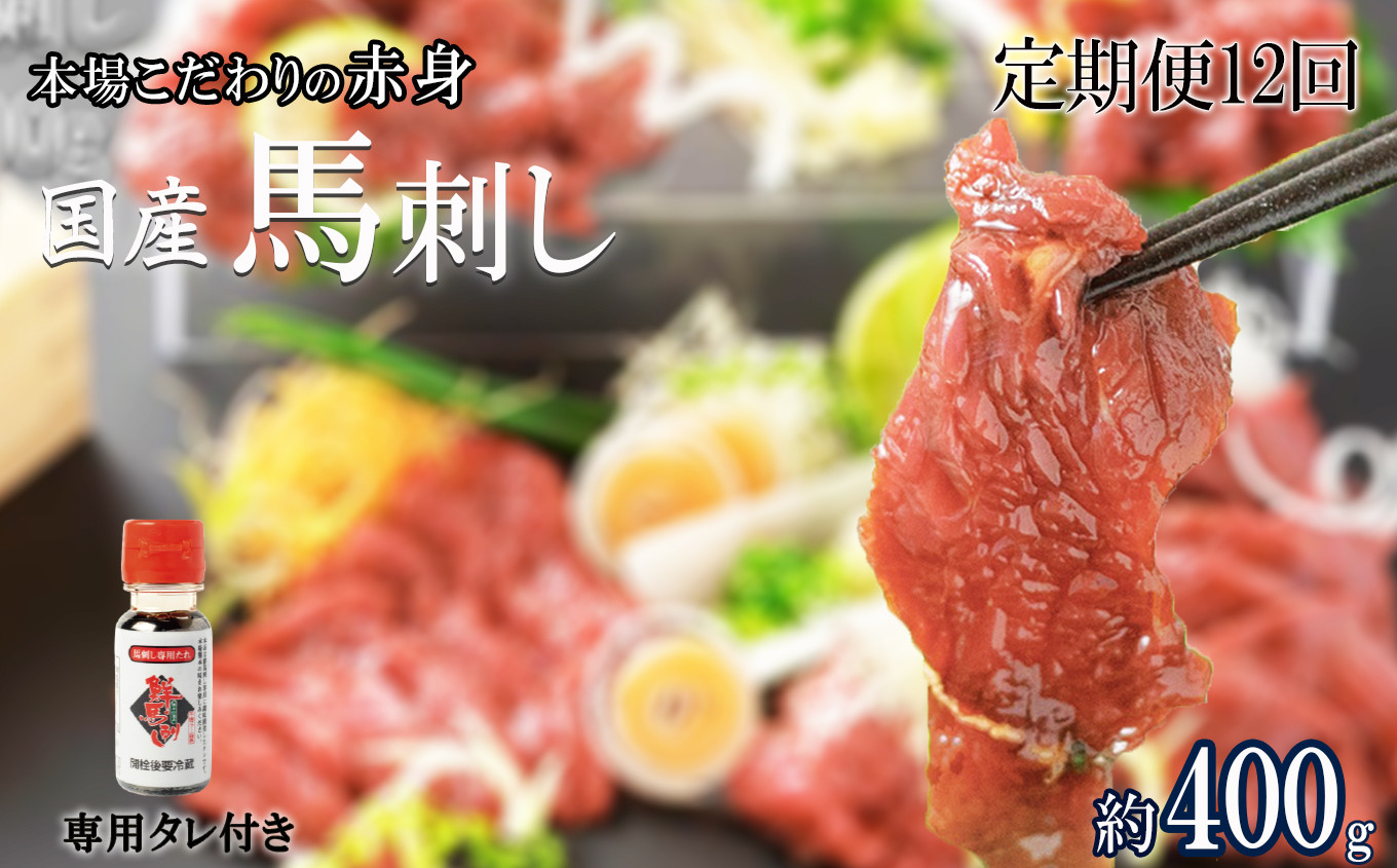 日本一の馬刺しメーカーから直送!本格馬刺しを御自宅で♪ 【定期便12回】くまもと 国産 赤身馬刺し 約400g | 肉 にく お肉 おにく 馬 馬肉 馬刺し 馬刺 赤身 タレ 定期 定期便 熊本県 玉名市