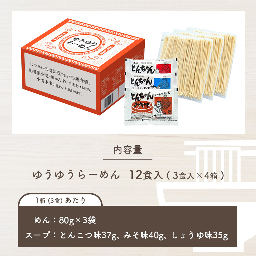 玉名産小麦を100%使用した麺 ゆうゆうらーめん 3食入り×4箱セット 熊本玉名産小麦使用 | 食品 麺類 ラーメン らーめん とんこつ 豚骨 しょうゆ 醤油 みそ 味噌 セット 熊本県 玉名市