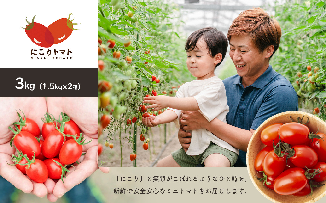 家族で愛情込めて育てたミニトマトをぜひ、ご賞味ください! にこりトマト 3kg | やさい 野菜 トマト ミニトマト アイコ 熊本県 玉名市