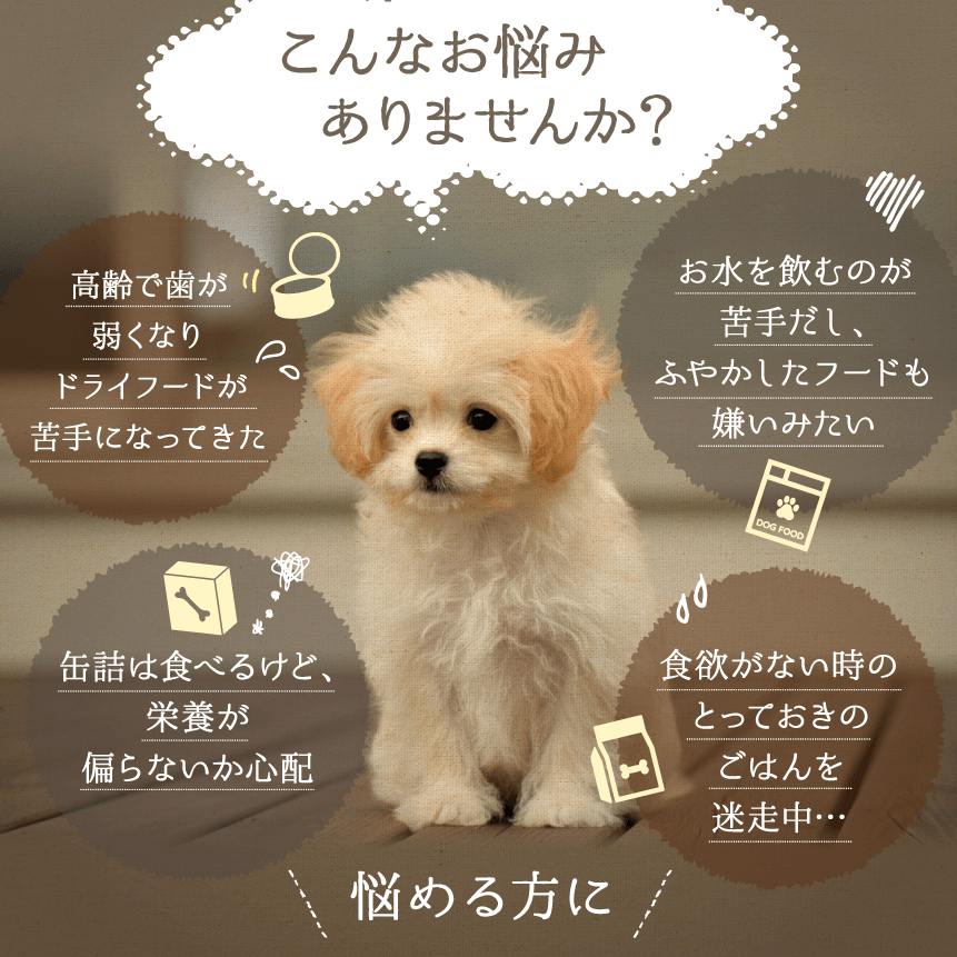 ソフトな食感になっているため、歯が弱くなったシニアのワンちゃんやカリカリを好まないワンちゃんにもおすすめです。