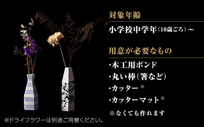 | 容量 | 内容:キット2種類 / 作り方の手引き 用意が必要なもの:木工用ボンド / 丸い棒(箸など) / ※カッター / ※カッターマット ※なくても作れます 対象年齢:小学校中学年(10歳ごろ)〜 制作時間:約1時間(1種あたり) 【原料原産地】 山鹿市 【加工地】 山鹿市 |